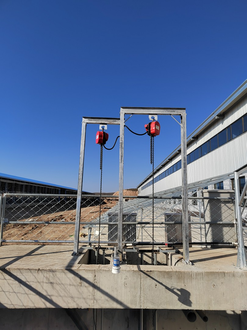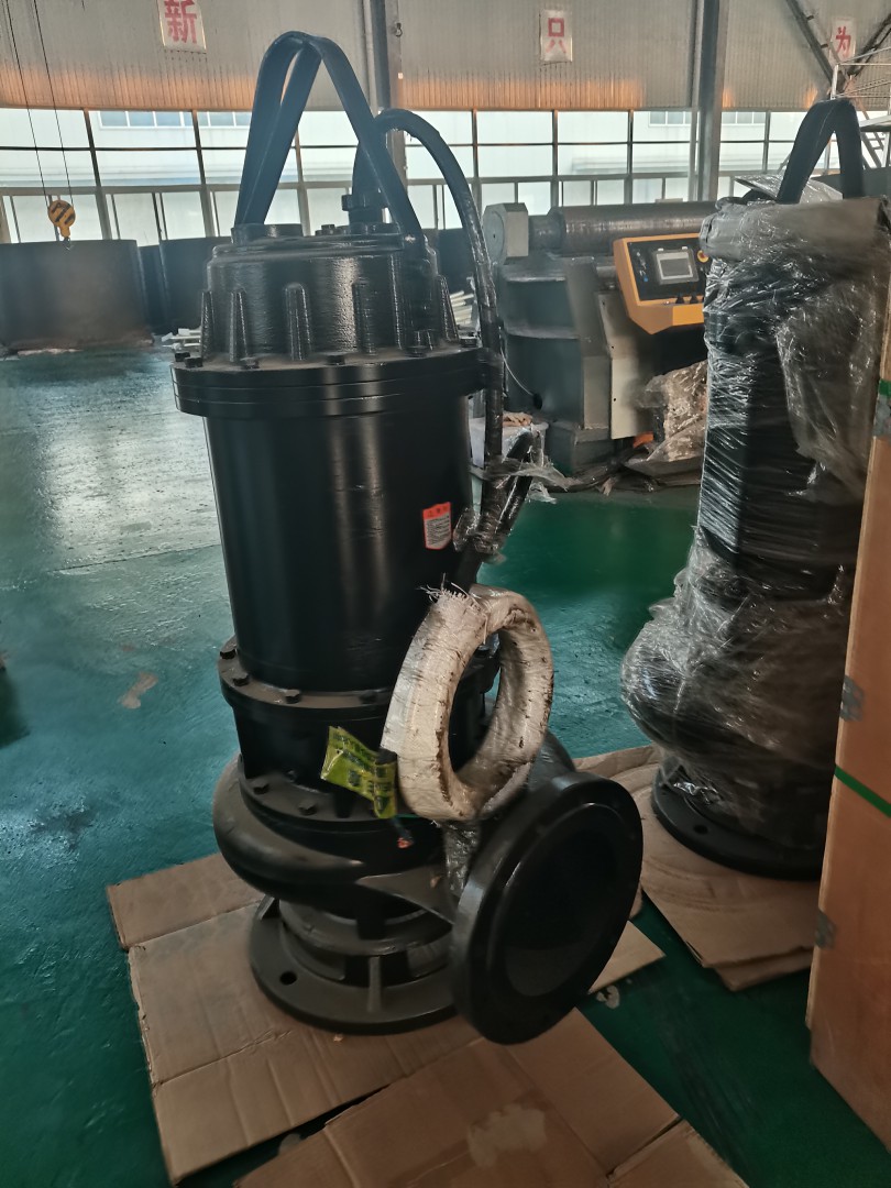 The model of the blade backwash pump is 250WQ500 - 30 blade submersible sewage pump, with a pipe diameter of 250mm, a flow rate of 500m³/h, a head of 12m, and a power of 30kw.