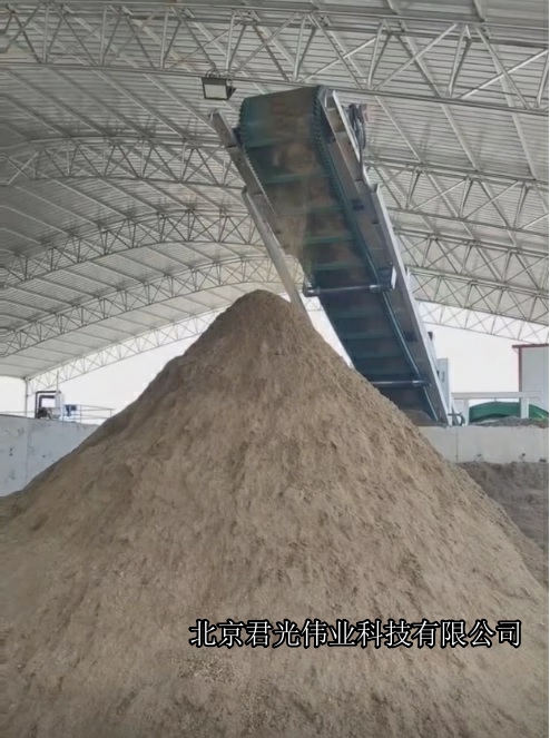 该产品是我公司自主研发的一种从牛粪中分离出未消化的纤维物质做有机垫料的高效系统(ZL2020 2 1129532.2; ZL2020 1 0553841.0)。该系统由螺旋挤压式分离机和一套滚筒组成,系统可以实现每天在本牧场内生产新鲜的有机垫料,单套设备垫料每天(16小时)产量45-50立方米。该系统生产研发融合国际自动化技术,好氧发酵过程在60-75℃下进行,总发酵时间24-36小时,不需要增加外部热源,该生物过程通过温度传感器进行监控,气流可调节。系统全年运行稳定,利用自有粪污资源生产卧床垫料,为牧场低成本、高效益的运行提供可靠保证。