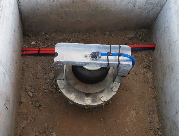进口材料生产,连接盘135mm,气囊直径189mm,充气高度160mm;气动速释型,具有快速释放/封闭管线的功能,整体热镀锌处理。冲水阀进水口直径为250,阀帽顶同周围地面为平面。盖板厚度5mm镀锌波纹板。 |