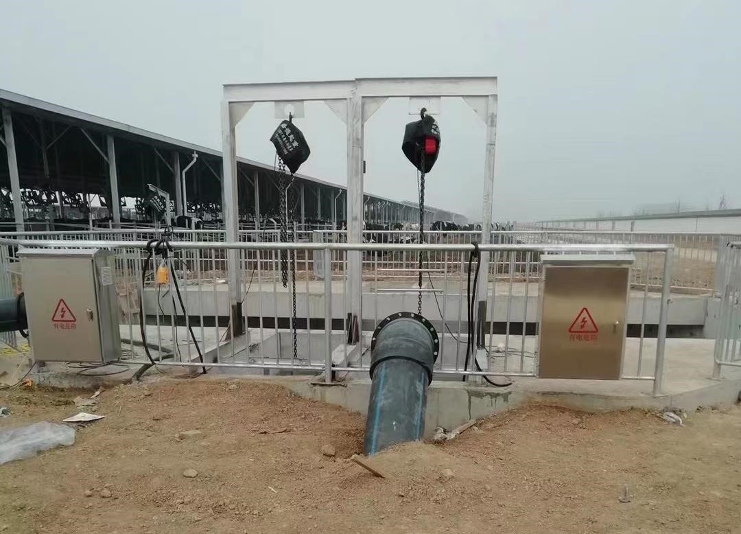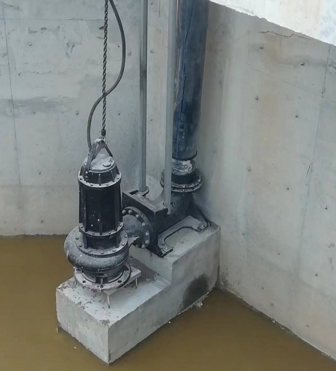 250WQ600-37带刀潜污泵,口径250mm,流量600m³/时,扬程12m,功率37kw; 泵体采用自动耦合式安装,将输送管线与耦合器基座法兰连接,耦合器基座固定在专用基础上,泵体依托耦合器爬升导杆可轻松摘取和自动连接管线。此外,所有泵体均配有热镀锌吊链,通过控制龙门架上的电葫芦可方便的将沉重泵体起吊检修。 |