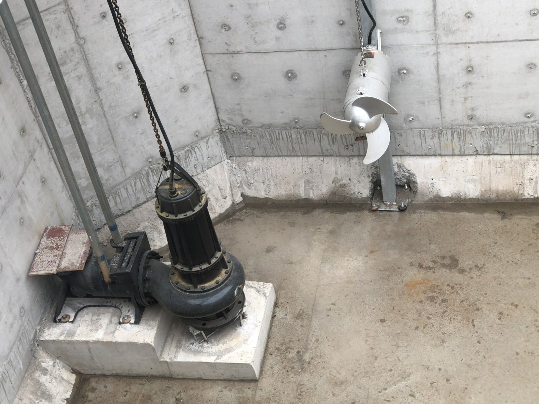 The model of the blade backwash pump is 250WQ500 - 30 blade submersible sewage pump, with a pipe diameter of 250mm, a flow rate of 500m³/h, a head of 12m, and a power of 30kw.